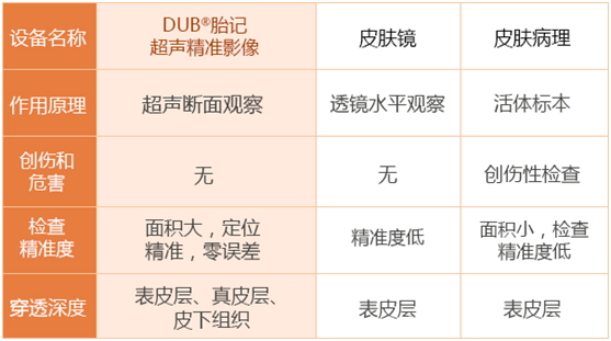 健肤皮肤专科门诊部是全国率先应用DUB®胎记超声精准影像仪的胎记门诊。临床应用结果显示:DUB®胎记超声精准影像仪相比皮肤镜、皮肤病理检查等传统检查结果更精准,完全到达高检测水准。